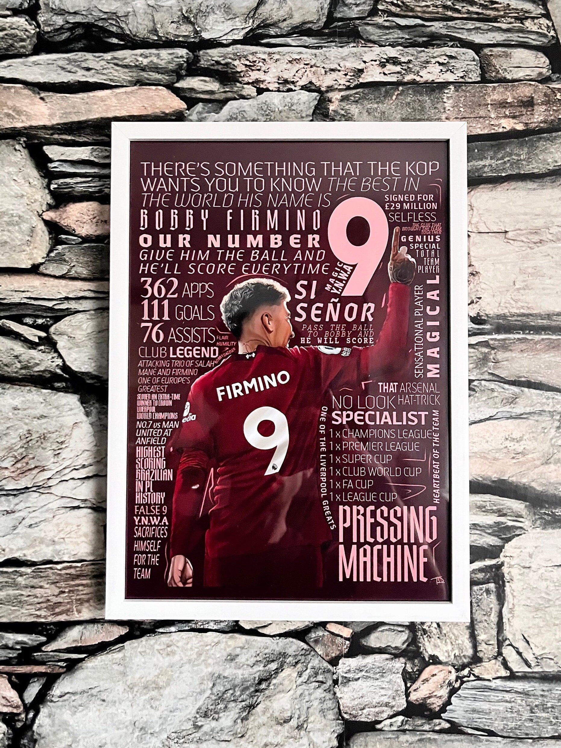 Honour Roberto Firmino’s legacy with this special art print, perfect for decorating your home, office, or as a thoughtful gift for any Liverpool fan.