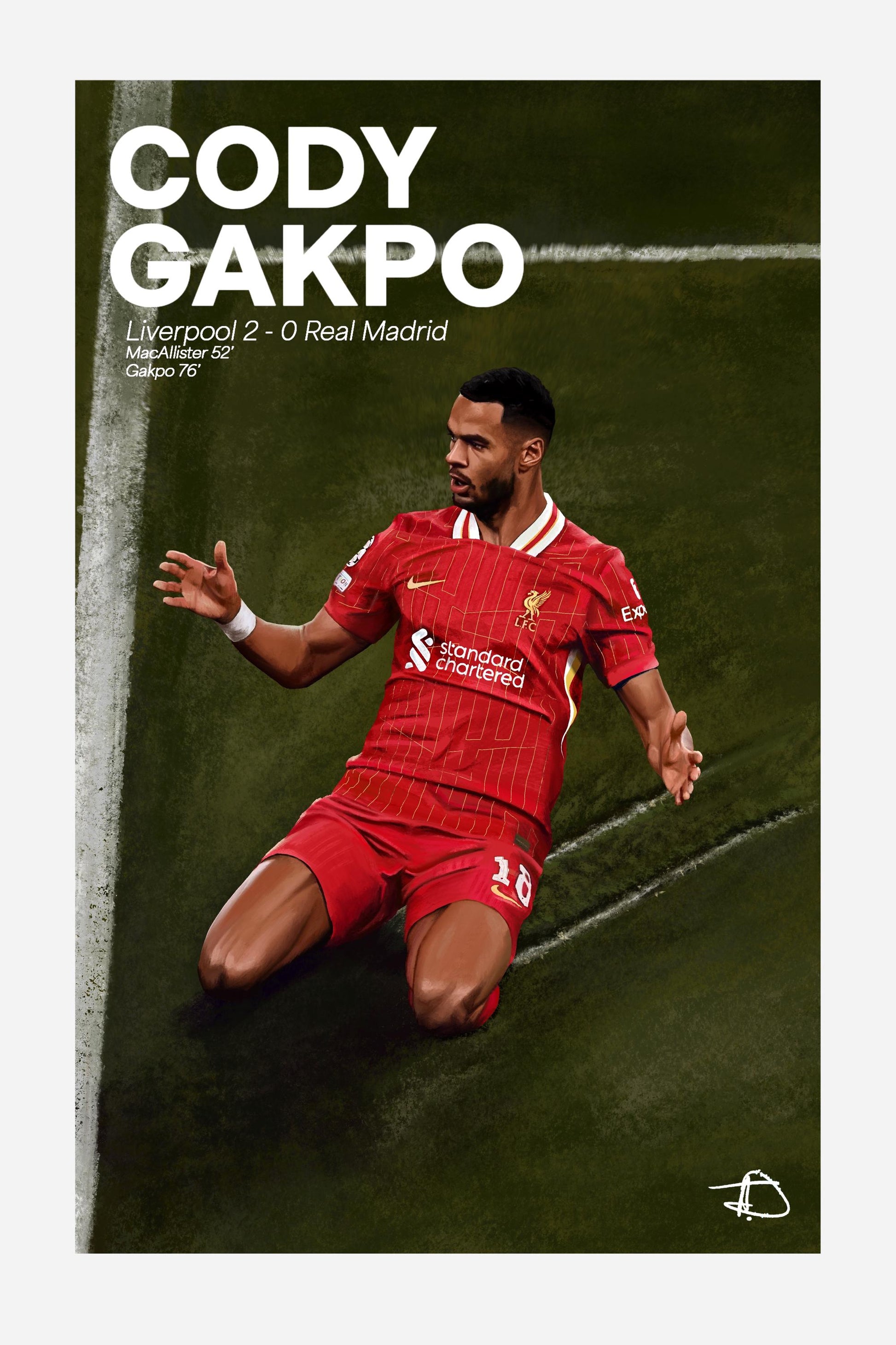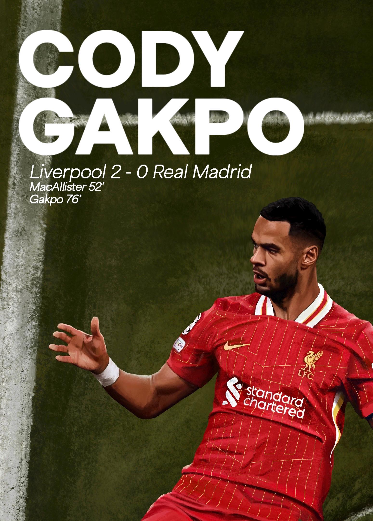 This print is of Liverpool and Dutch forward Cody Gakpo. Available in 3 different sizes in very high quality print!